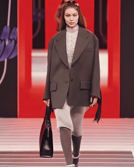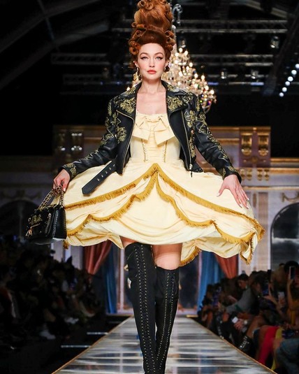 В показе итальянского модного дома приняла участие и Белла Хадид. Топ-модель примерила соблазнительный офисный look. В Милане также состоялся эпатажный показ Moschino. Ирина Шейк в образе королевы Марии Антуанетты стала звездой шоу Джереми Скотта.
