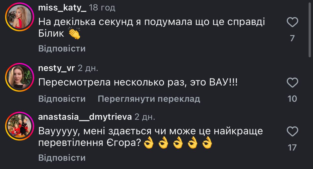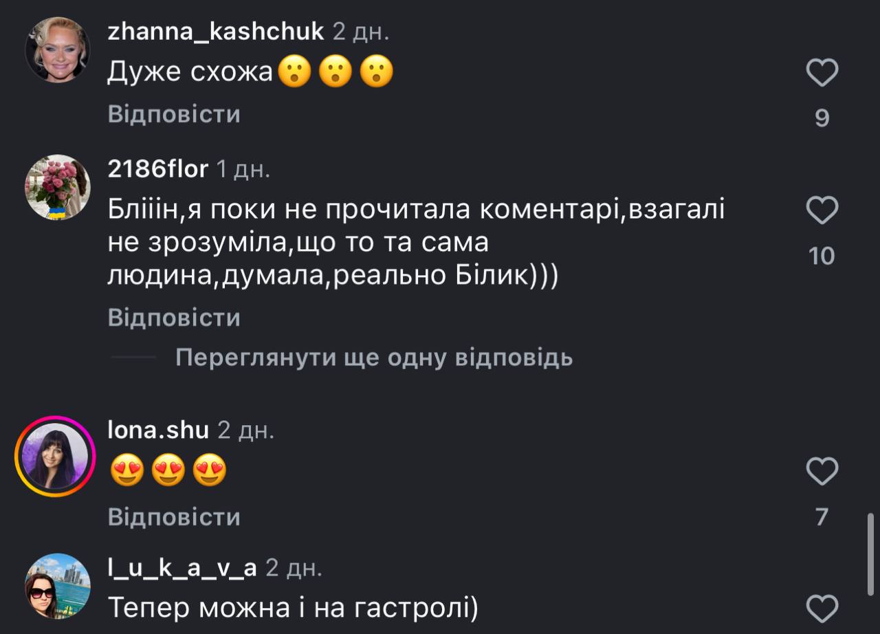 - «Я поки не прочитала коментарі, взагалі не зрозуміла, що то та сама людина, думала, реально Білик»