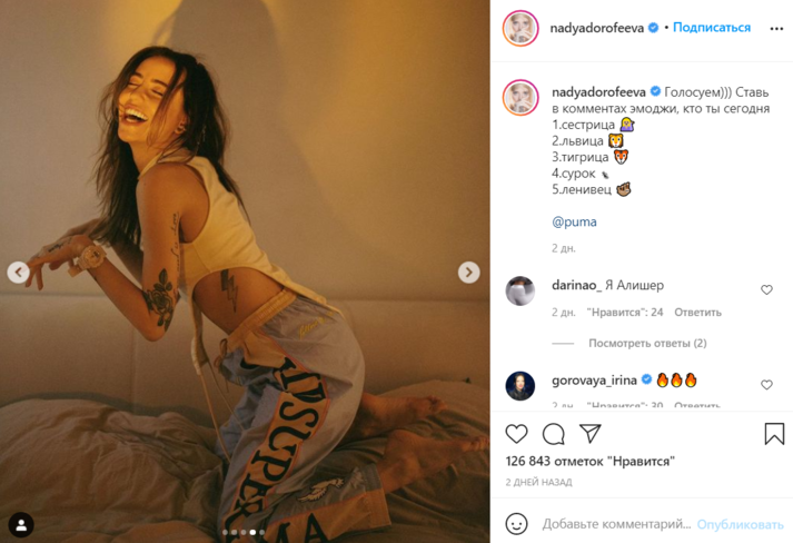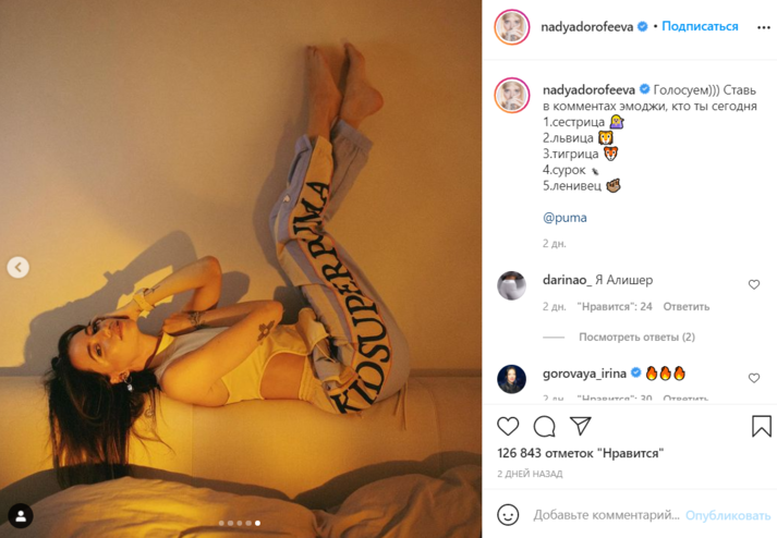 «Какая ты замечательная», «Кошка», «Сразу видно, что Дорофеева львица», – писали в комментариях поклонники.
