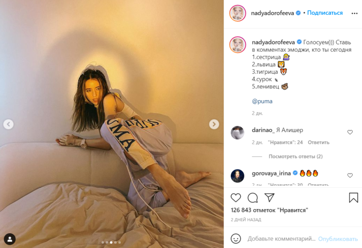 Поклонникам в сети понравилась фотосессия Дорофевой в кровати. Они оставили множество приятных комментариев под серией снимков.