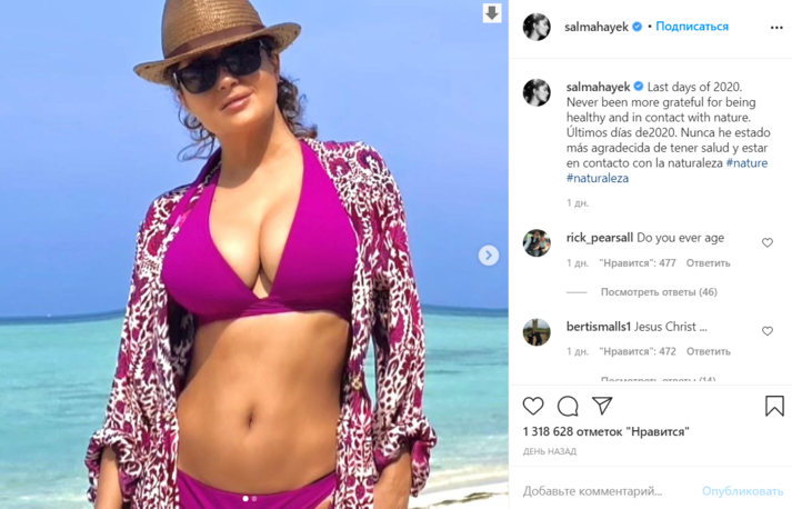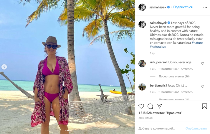 Фанаты пришли в восторг от горячих кадров Сальмы. «Магическая красота», «Время над тобой не властно», «Ты вообще меняешься с возрастом?!», «Все еще такая юная!», «Обожаю эту женщину», «Огненная, эротичная!», «Дразнишь воображение!», «Красивая грудь», «В 50 лет выглядишь лучше, чем некоторые в 20», — прокомментировали пользователи Instagram.