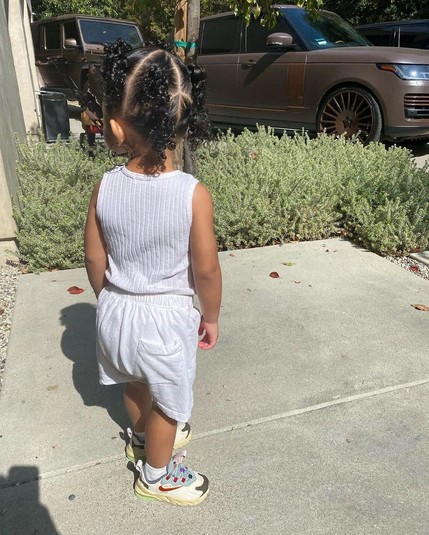 Модель нарядила дочь в майку, спортивные шорты и кроссовки – сама Дженнер обожает такой стиль и нередко одевается так же. Инстадива собрала волосы малышки в хвостики, чтобы лучше были видны серьги.