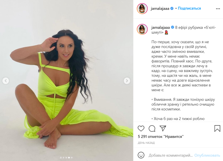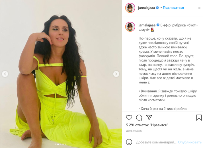 Популярная украинская певица Джамала очаровала подписчиков модным образом. В своем Инстаграме артистка поделилась кадрами, на которых предстает в пикантном обтягивающем платье лимонного цвета. Наряд прекрасно подчеркнул стройную и похудевшую фигуру знаменитости.