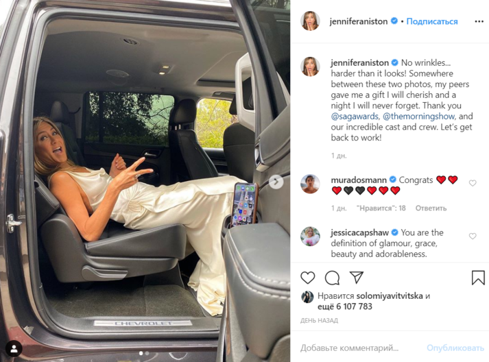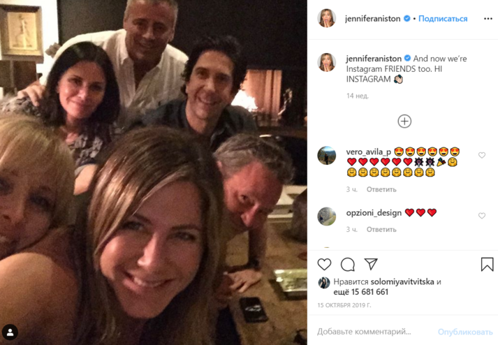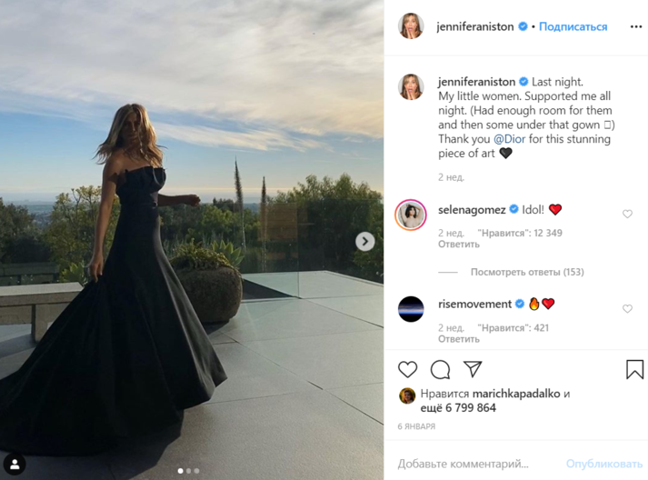 Дженнифер Энистон упорно отказывалась от соцсетей, но осенью прошлого года она буквально взорвала Инстаграм, внезапно создав аккаунт