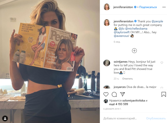Дженнифер Энистон призналась, кто заставил ее завести Инстаграм