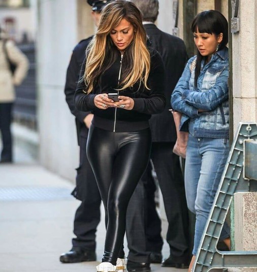 Судя по кадрам, в картине героиня Джей Ло будет менять одежду так же часто, как и звезда в реальной жизни. Все образы яркие и соответствуют персонажу - обилие красок, разноцветный мех, стразы, облегающие латексные легинсы. Актрисе приходится несладко на съемках, поскольку она часами вынуждена ходить в неудобной обуви - туфлях и ботинках на каблуках-шпильках, танкетках.