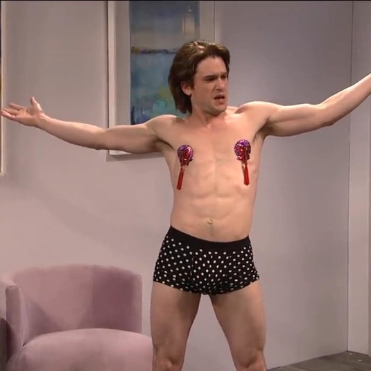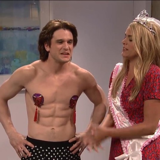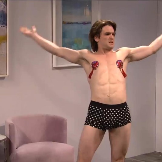При содействии других актеров проекта он принял участие в съемках популярного шоу Saturday Night Live на телеканале NBC. В рамках программы актер поимпровизировал в ряде скетчей, для чего кардинально сменил имидж - сбрил бороду и усы, а также выпрямил свои фирменные кудри.