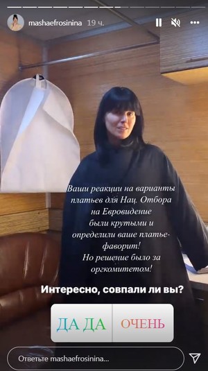 Телеведущая также попросила совета у поклонников по поводу своей прически: с челкой или без. 60 процентов подписчиков проголосовали за челку, но Маша сомневается. Как будет выглядеть Ефросинина, увидим уже через час. Финал Нацотбора состоится в формате телевизионного концерта 12 февраля в 18.30 в прямом эфире общественного телеканала Ua:Перший.