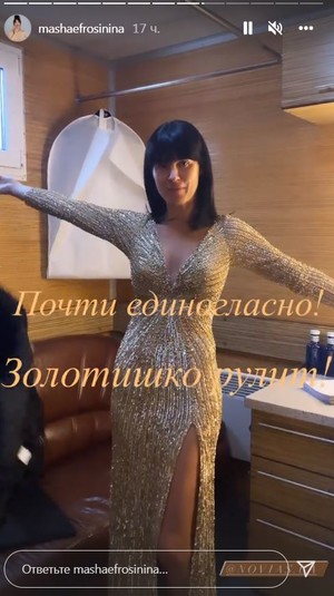 Сегодня Ефросинина написала, что «почти единогласно» ее подписчики проголосовали за золотой наряд. Маша шутит: «Золотишко рулит». На сайте бутика этот наряд стоит 1 455 долларов – почти 40 тысяч гривен.