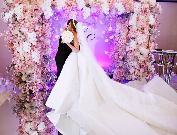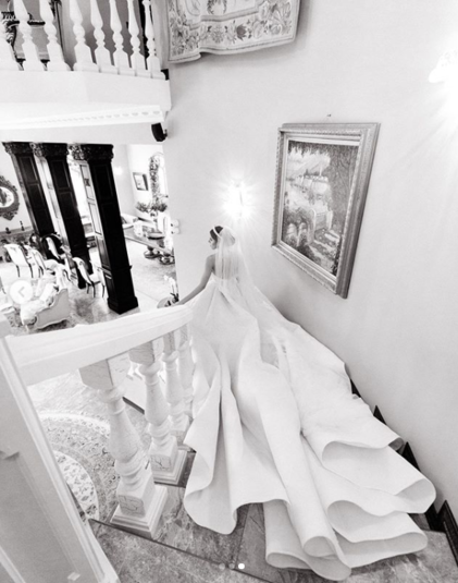 На снимках можно четко рассмотреть свадебное платье артистки, которую она едва не потеряла при перевозке из Лондона.