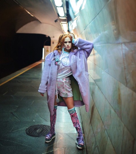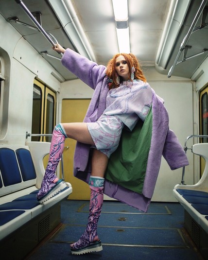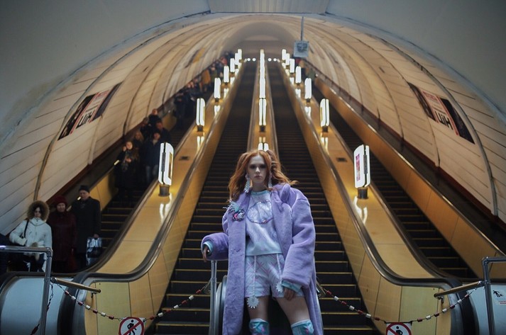 В 2-минутном ролике Ира позирует на эскалаторах, висит вверх ногами в вагоне киевского метро, дефилирует по платформе. А еще ест лапшу. Все это – в ярких look’ах от бренда Monstrа.
