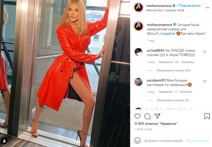Бывшая участница группы «Виа Гра» Миша Романова вызвала фурор пикантным фото. В своем Инстаграме 30-летняя исполнительница опубликовала эротическую фотографию, на которой позировала в лифте. В кадре звезда появилась только в красном кожаном плаще и белье. Артистка засветила длинные стройные ножки.