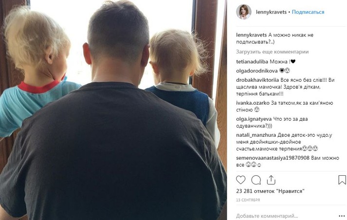 Стоит отметить, что Елена Кравец часто публикуют снимки малышей в соцсети. Однако, лица детей она предпочитает не показывать. Практически все фотографии Кати и Вани сняты со спины.