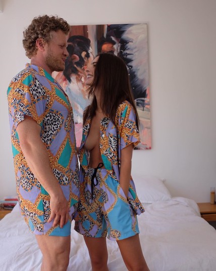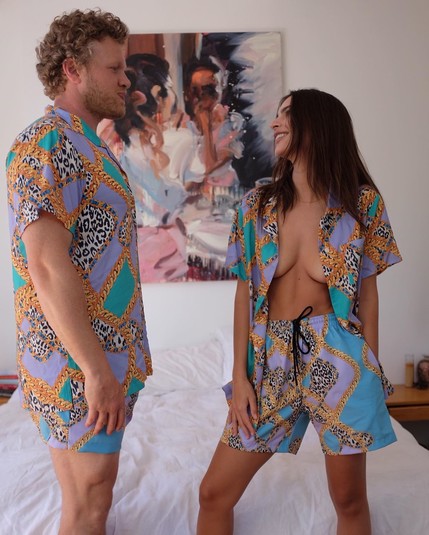 28-летняя американская модель Эмили Ратаковски и ее супруг, актер и продюсер Себастьян Беар-МакКлард, примерили семейный look. Ратаковски и кинематографист предстали в одинаковых пижамках фиалкового цвета с принтом в виде леопардовых вставок и цепей.