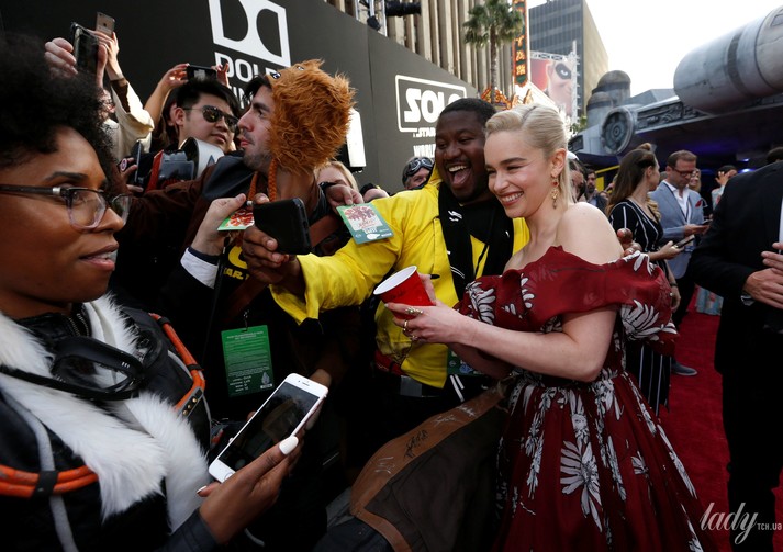 Звезда «Игры престолов» Эмилия Кларк, обосновавшаяся в статусе одной из самых популярных голливудских актрис современности, пришла на красную дорожку премьеры новых «Звездных войн» в стильном наряде Valentino из кутюрной весенне-летней коллекции. Первый показ новой части звездной саги состоялся в лос-анджелесском El Capitan Theatre.