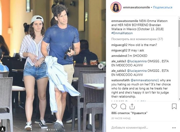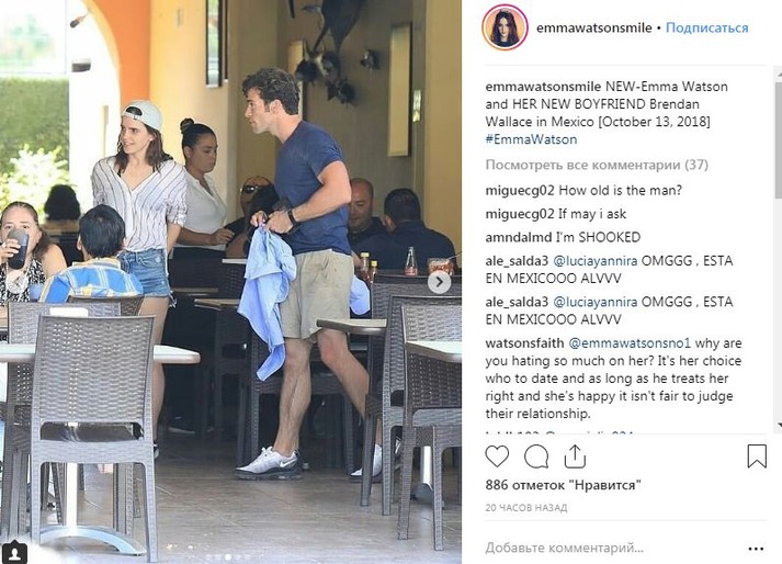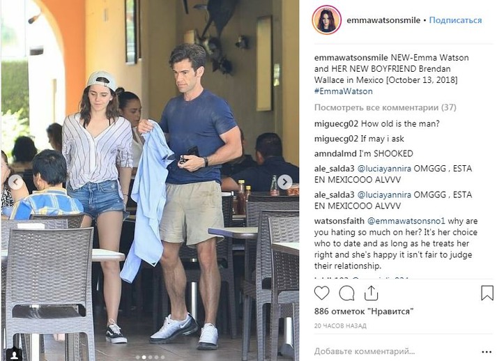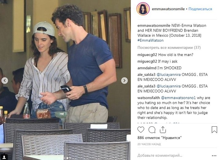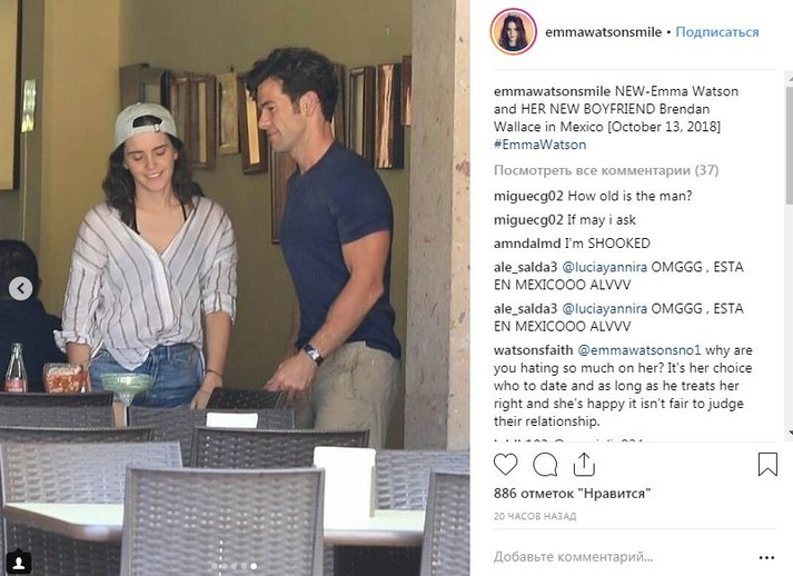 Еще вчера папарацци приметили пару в Мексике. Молодые люди обедали в одном из местных кафе, общались, целовались и хорошо проводили время в компании друг друга, не обращая внимания на фотографов. Допив коктейли, пара покинула заведение. Эмма Уотсон была одета в рубашку и короткие прогулочные шорты, Брендан выглядел также неформально в бриджах и футболке.