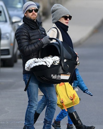 Папарацци заметили звездных супругов на прогулке со старшим сыном и детской переноской