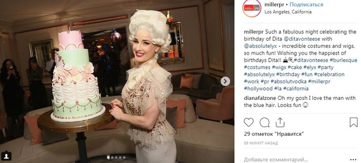Эпатажный день рождения: Королева бурлеска Дита фон Тиз закатила вечеринку в стиле Марии-Антуанетты
