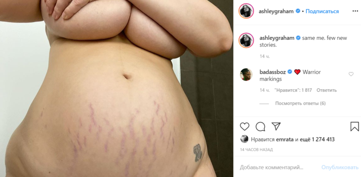 Эшли поделилась новым фото, на котором продемонстрировала растяжки на животе