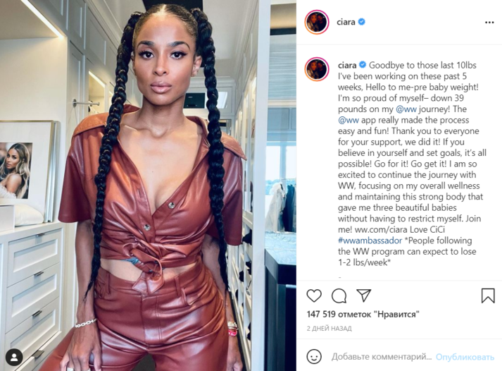 Темнокожая певица Сиара показала тело после третьих родов и пожаловалась на сложности похудения. Второго сына американка родила в июле 2020 года.