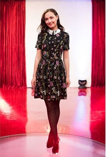 Несмотря на то, что состояние здоровья певицы еще не наладилось – она появилась перед камерами спокойной и улыбчивой. Для интервью звезда надела игривое черное платье с ярким принтом.