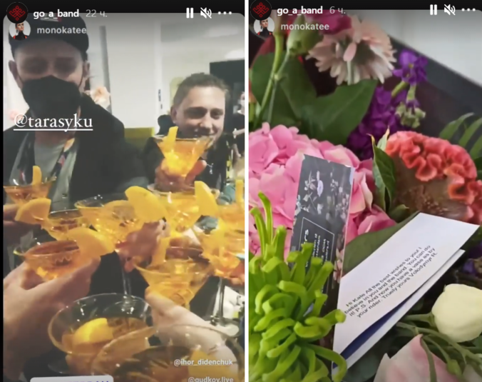 Катя рассказала, что в своем номере обнаружила открытку в одном из букетов - оказалось, что цветы отправили специально для музыкантов из Украины поклонники.