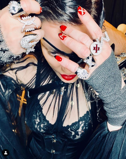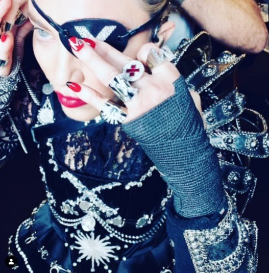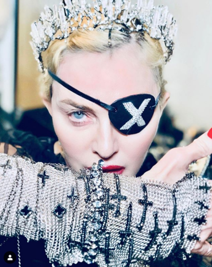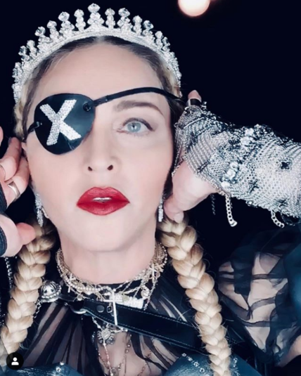 60-летняя поп-идол современности Мадонна стала главной звездой «Евровидения»-2019». Звезда появилась перед публикой в мини-платье, которое из-за богатой отделки напомнило кольчугу. Образ дополнила повязка на глазу, которая стала главной фишкой предстоящего гастрольного тура Мадонны. Волосы звезда заплела в красивые косички.