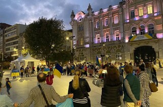 Українська співачка Ірина Федишин під час благодійних концертів в Іспанії відвідала мітинг на захист України, який був організований у місті Сантандер.