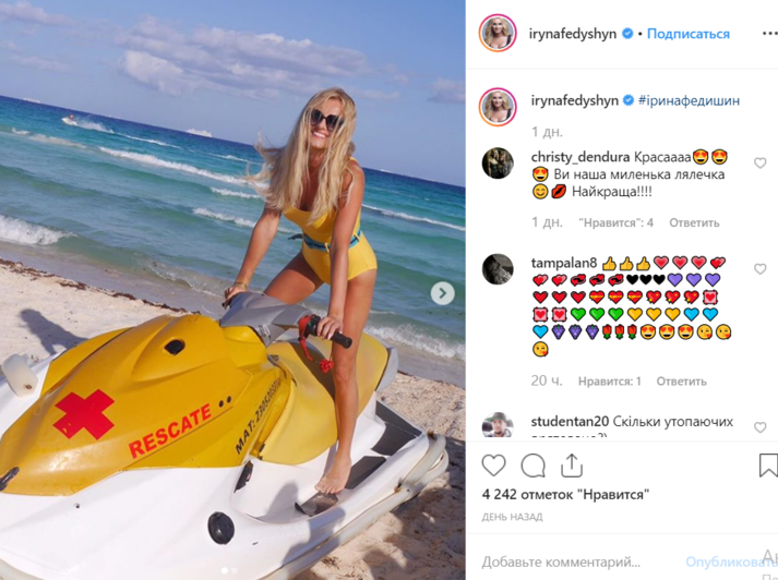«Ирочка, этот купальник вам очень идет. Секси-бомба», «Милашка», «Восхитительная красавица», «Невероятная фигура», - пишут восхищенные почитатели выдающихся форм певицы.