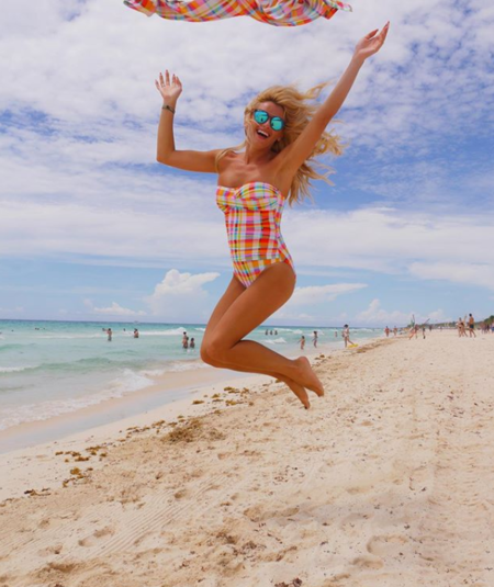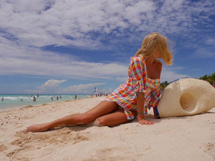 Так, в своем Инстаграме знаменитость показала, как наслаждеатся солнышком на пляже в Мексике. Звезда шоу-бизнеса похвасталась стройными формами в красном мини-платье и коралловом купальнике.
