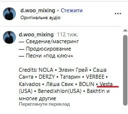 У старих дописах росіянина вказано серед виконавців, з якими він співпрацював артистку під псевдонімом Vesta. Після розголосу, звукорежисер видалив цей допис зі своєї сторінки. З’ясувалося, що цим ім’ям раніше підписувалася у соціальних мережах Валерія Симулик. Як, наприклад, в описі під своїми піснями у YouTube-каналі.