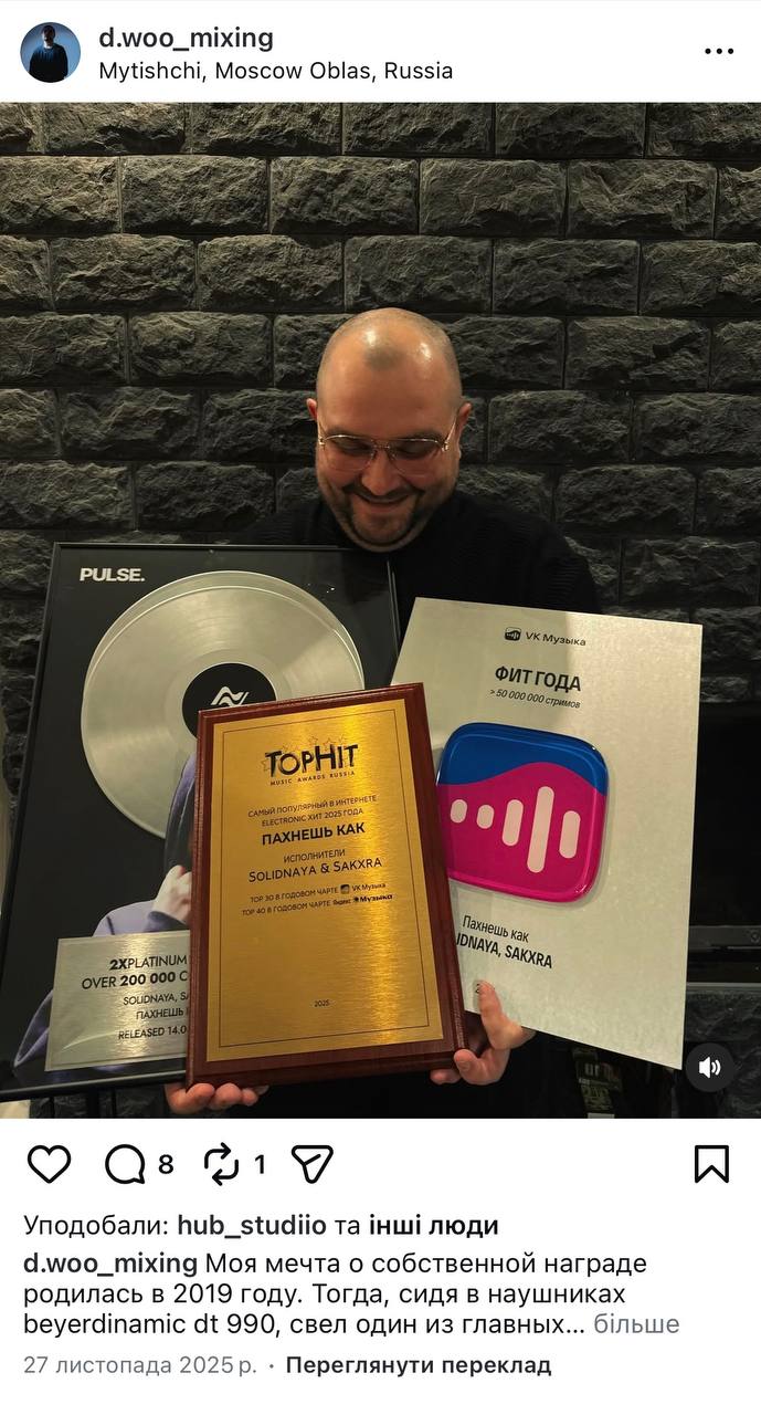 На сторінці російського звукорежисера знайшли відмітки про пісні співачки Валерії Симулик