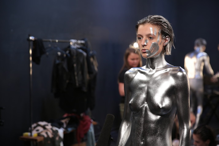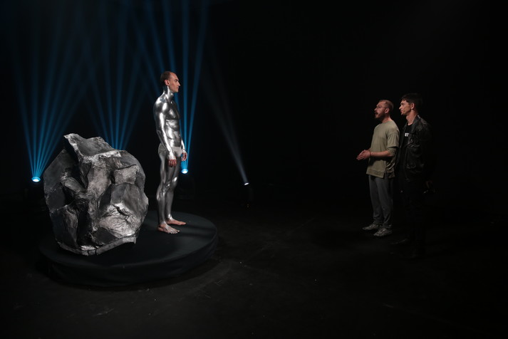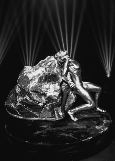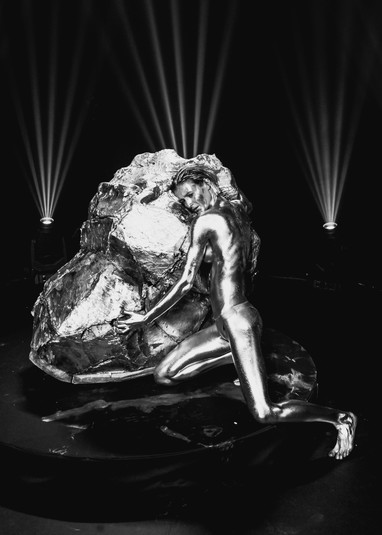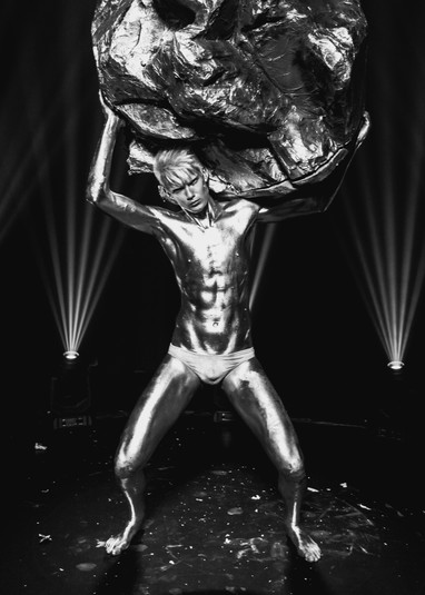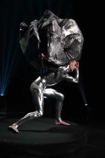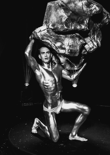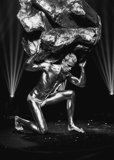 «Эта съемка была вдохновлена античностью, – рассказывает руководитель проекта Алена Звирык. – Наши участники изображали Сизифа, который держит на плечах камень – груз прошлого, невыясненных отношений и всего, что тяготит ребят. Наши художники создали красивый камень. Их задачей было сделать его достаточно большим, но при этом подъемным – чтобы модели могли держать его на руках и позировать»