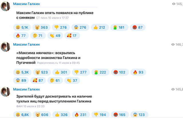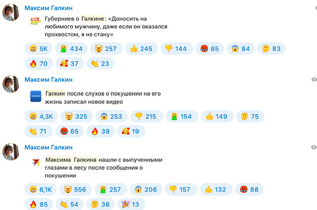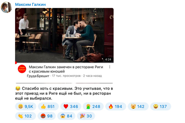 Юморист Максим Галкин, который с началом войны выехал с семьей из России, прокомментировал развернувшуюся против него кампанию в СМИ. Галкин, который публично осудил нападение РФ на Украину, написал в своем телеграм-канале: «Изо лжи про меня в нашей прессе можно уже хит-парад составлять. Каждый день очередная ересь. Некоторые заголовки прямо пародия на желтую прессу». Максим опубликовал жесточайшие заголовки о нем: «Зрителей будут досматривать на наличие тухлых яиц перед выступлением Галкина», «Максима Галкина нашли с выпученными глазами в лесу после сообщения о покушении», «Депутат Милонов предложить забрать человеческий паспорт у Галкина» и т.д.
