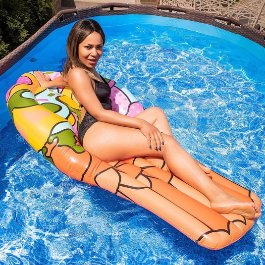 На снимке певица позирует лежа на матрасе в сексуальном черном купальнике и демонстрирует аппетитные формы.