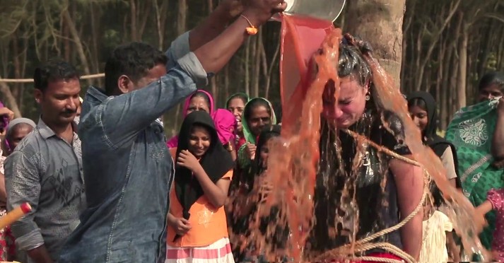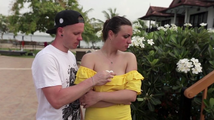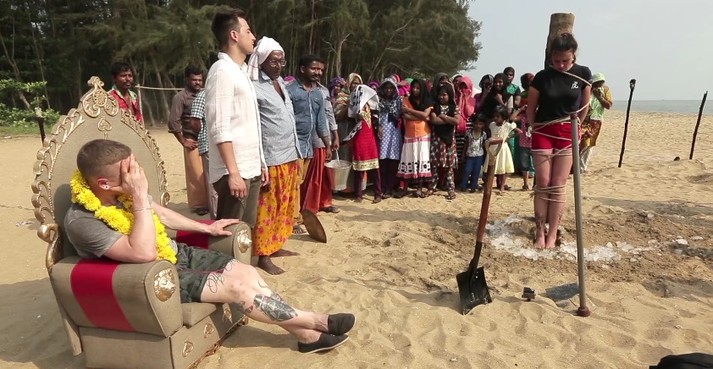 Но, похоже, Саша не предполагал, что самым сложным испытанием для него станут… страдания Даши! Местные жители «уважили» пару традиционным обрядом очищения будущей невесты от злых духов. Плотно привязав Дашу к дереву толстым канатом, индусы устроили ей экстремальное омовение. Сначала – ледяной водой, позже – бычьей кровью, и, напоследок, священным коровьим пометом… Хватило ли у Саши смелости остановить местных шаманов, или же он молча наблюдал за происходящим?