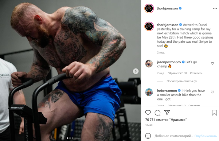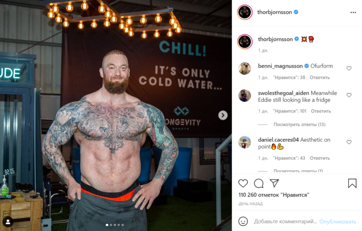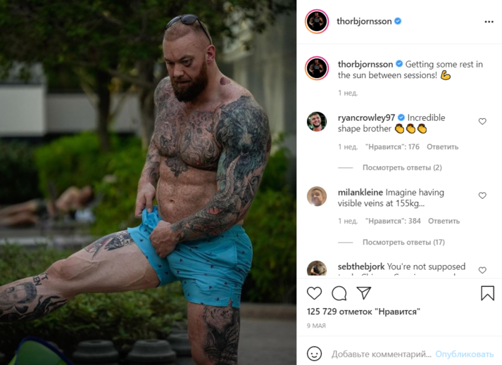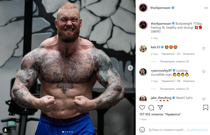 Результат длительной работы над собой Хаффтор Бьернссон показал в соцсетях