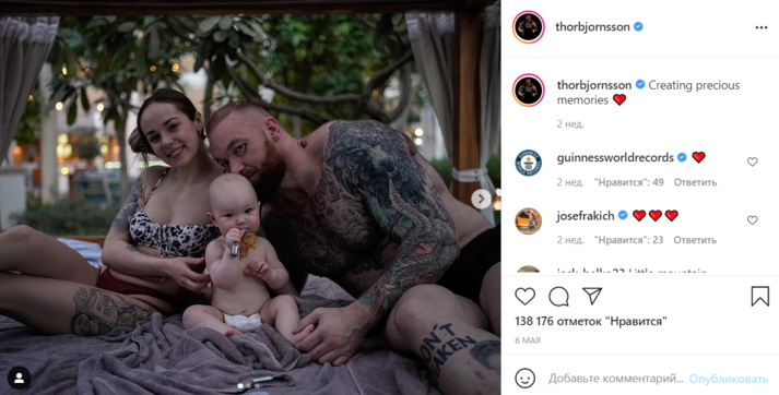 Фанатам он рассказал, что изначально весил 200 килограммов. В какой-то момент Бьернссону стало тяжело передвигаться, из-за чего он обратился к врачам с просьбой помочь ему сбросить лишний вес. Работа в тренажерном зале и правильное питание привели к нужному результату — Хаффтор сбросил 50 килограммов.