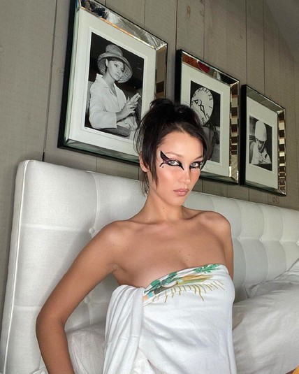 Девушка запечатлела себя в постели. Для эффектных кадров Хадид оголилась. Супермодель игриво прикрыла обнаженное тело простыней. Звезда собрала волосы в пучок и сделала акцент на эпатажном макияже. Белла превратила стрелки в завораживающий арт. Чувственные губы инстадива накрасила светло-розовой помадой.