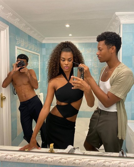 Визажист сделал Кунаки нежный мейкап, подчеркнувший ее естественную красоту. Пышные кудрявые волосы популярная девушка собрала в высокий хвост. В этом образе Тина позировала рядом с российской моделью Еленой Перминовой. Среди гостей мероприятия также были замечены и другие знаменитости: актер Эзра Миллер, британская манекенщица Сьюки Уотерхаус, первая трансгендерная модель Victoria’s Secret Валентина Сампайо, возлюбленная миллиардера Владислава Доронина модель Кристина Романова.