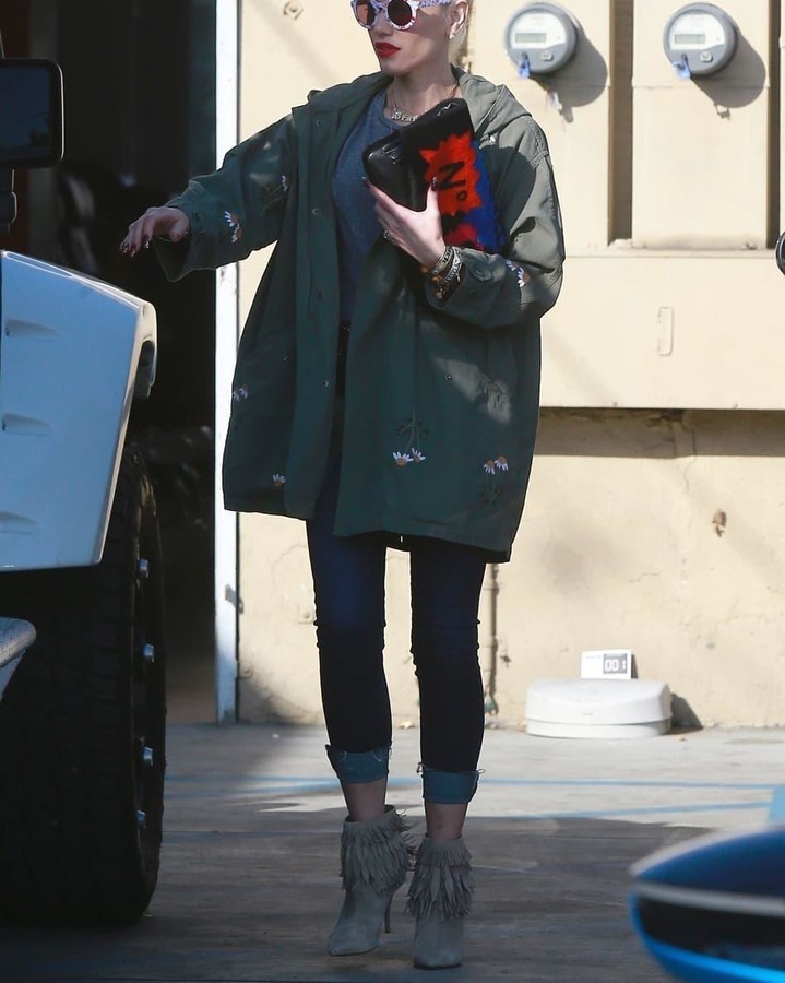 Как передает Dailymail, Гвен выглядела круто, она была одета в темно-синие джинсы с серым топом и зеленую куртку. Она добавила пару ботинок на каблуках до щиколотки, которые были украшены бахромой, а на сумке было написано название ее старой группы, No Doubt. Накануне Стефани завершила последний этап своей программы в Лас-Вегасе.