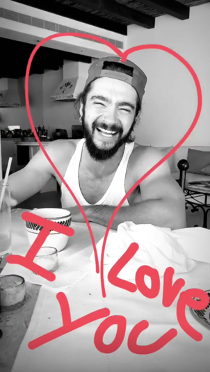 Кроме того, Хайду опубликовала видео в Stories. на котором заснят ее возлюбленный. Модель написала «Я люблю тебя» и нарисовала сердце.
