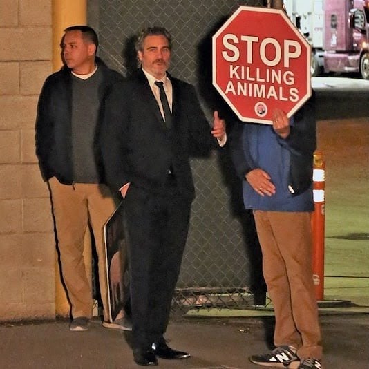 Хоакин Феникс после вручения кинопремии отправился на скотобойню успокаивать свиней (фото)