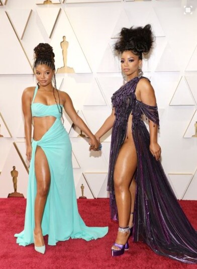 Холли Бэйли – звезда нового диснеевского фильма «Русалочка», а так, со своей сестрой Хейли, прославились, как певицы. Их заметила Бейонсе, а дальше карьера Холли пошла в гору. Но пока Холли никак не продемонстрирует успех на красных дорожках. Оскар-2022 стал очередным провалом. Слишком открытое и откровенное платье от Roberto Cavalli явно не вписывалось в дресс-код.