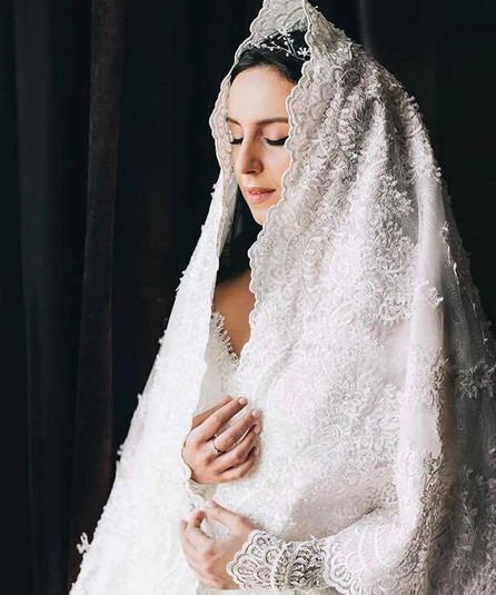 Джамала выбрала для церемонии белое платье в пол, с открытыми плечами и прозрачными рукавами с кружевом. На самом никях, как и положено крымскотатарской красавице, у девушки были полностью прикрыты все открытые участки тела. Объемная кружевная накидка очень красиво накрывала плечи и руки невесты, добавив образу невесты ту самую особенную восточную изюминку.