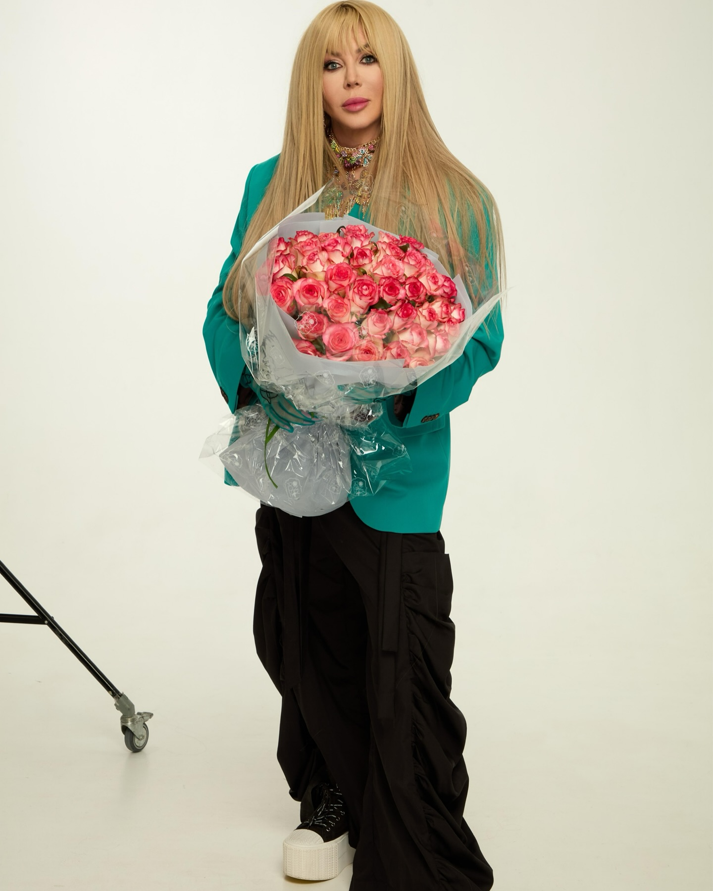 Білик також показала світлини, на яких тримає розкішний букет рожевих троянд.