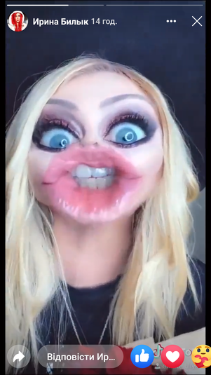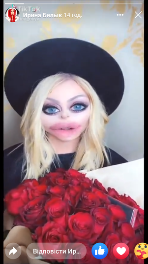 «Украинская Мадонна» Ирина Билык продолжает осваивать молодежные тренды. В Тик Ток-профиле народной артистки то и дело появляются смешные видео в которые звезда экспериментирует с внешностью. Недавно артистка представила, как будет выглядеть через 100 лет, а в свежем ролике певица «сделала пластику».