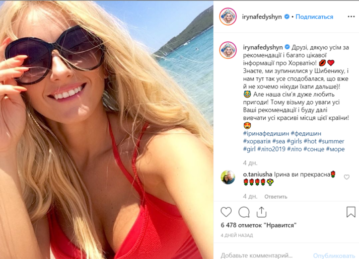 «Лично я, не очень люблю фоткаться на курорте! Лучше понежиться на солнышке! Плюс, это всегда привлекает внимание. И меня больше узнают! Но человек очень любит меня фотографировать! Когда я вижу его счастливые глаза, то это стоит того , чтобы уделить тому время! (Sic), - написала 32-летняя блондинка.