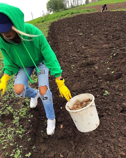 Ирина Федишин в белых кроссовках показала, как садит картошку