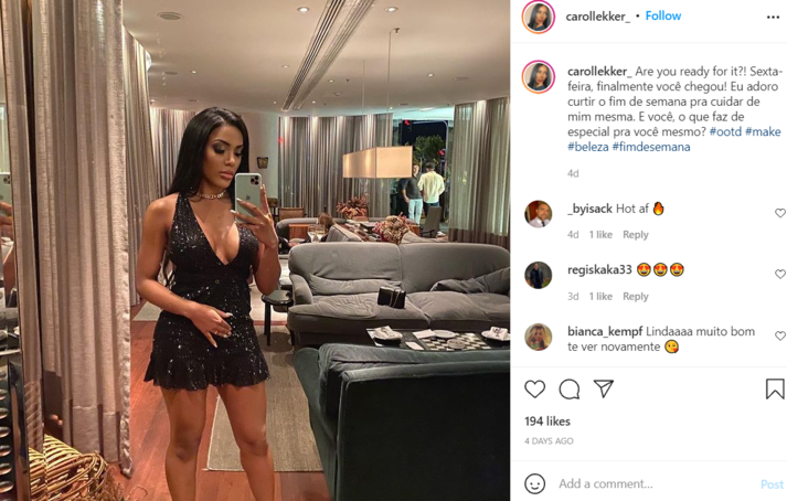 Ана Каролина Леккер (Ana Carolina Lekker) рассказала, что ради достижения желаемой внешности четыре раза перенесла ринопластику, липосакцию, биопластику (введение жидкости для увеличения ягодиц), а также хирургическим путем удаляла жир из тела и делала ряд косметологических процедур на лице.